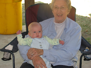 Sunday we traveled to Jacksonville, AL for the Green family reunion. Here's Jacob visiting with Kristine's aunt Betty:I also learned a valuable piece of information that day. The only thing worse than changing a dirty diaper at home is trying to change a dirty (of the "blow-out" variety) diaper on a Honda's front seat parked in a gas station parking lot.